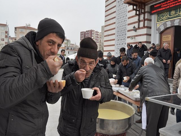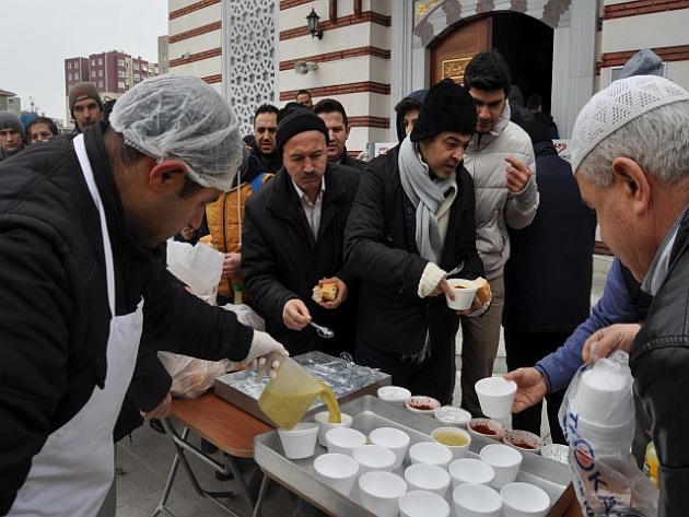 Yeni yapılan ve hizmete Başbakan Davutoğlu'nun açtığı Metin Şar cami Cuma namazı sonrası dağıtılan sıcak çorba ilede bereket saçıyor