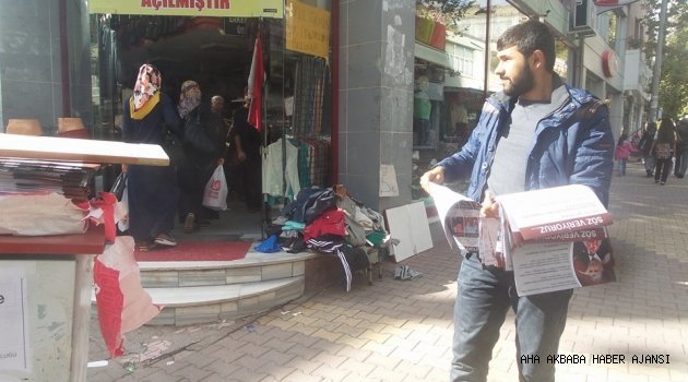 Adıyaman'ın farklı bölgelerinde dağıtılan gazete şekilinde olan seçim broşürünü alan vatandaşlar gazete okur gibi okuyor ve seçim çalışmalarını taktir ediyor.