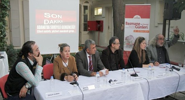 Aras’ın ardından söz alan Konak Belediyesi Kadın, Sosyal Politikalar ve Projeler Müdürü Meryem Sezgin Gümüştürkmen ise Basmane’de yürüttükleri çalışmalar hakkında bilgi verdi. Konak Belediyesi olarak insan odaklı çalışmalar yaptıklarını dile getiren Gümüştürkmen, “Burada çok hazin öyküler gördük. Doğumlar da oldu ölümler de... Avrupa ülkelerine gitmek hedef olsa da aslında sadece yaşam haklarını elde etmek, yaşamak istiyorlardı” diye konuştu. Konak Belediyesi Sağlık İşleri Müdürü Dr. Özgür Duman da Basmane’ye gelen insanların ciddi sağlık problemleri yaşadıklarını belirterek Konak Belediyesi olarak ellerinden gelen her türlü hizmeti sunduklarını söyledi. Basmane’de yaşamak zorunda kalan mültecilerin önce insan olarak görülmesi gerektiğini vurgulayan Duman, “Bu insanlar ölmekten kaçıyor, yaşamaya çalışıyor. Barınacak bir yer ve yaşamak istiyorlar” dedi. Araştırmacı Yazar Abdülkadir Hazman ise Suriye’deki iç savaştan kaçarak İzmir’e gelen sığınmacıların yüzde 70’inin Basmane ve civarında yaşadığına dikkat çekerek, bu durumun bölgeyi her açıdan etkilediğini söyledi. Herkes için Acil Sağlık Derneği Başkanı Ülkümen Rodoplu da, Basmane bölgesinde yaşayan mültecilerin yorgun ve kırgın olduklarını dile getirerek, “En ciddi sorunların başında iletişim sorunu, alışkanlıklarının bozulması ve toplumdaki önyargının farkında olmaları geliyor. Toplum olarak onları misafir etmemize rağmen bu ülkenin önemli değerlerinin başında olan misafirperverliği gösterebilmiş değiliz. Sayıları kaç olursa olsun başlangıçta komşulara kapıyı açtık diye başlayan söylem, dünyada bu toplumun komşularını bağrına bastığını göstermiyor” ifadelerini kullandı.