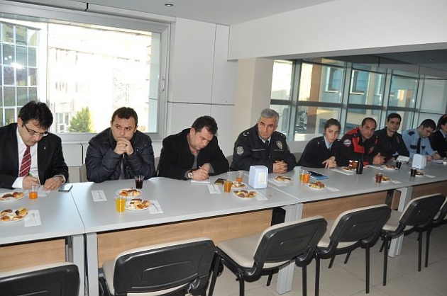 Güngören emniyet müdürü Murat Bingöl banka, döviz, ve ptt şube yetkilileriyle bir araya gelirken güvenlik konusunda her şeyin polisden beklenmemesi gerektiğini dile getirdi.