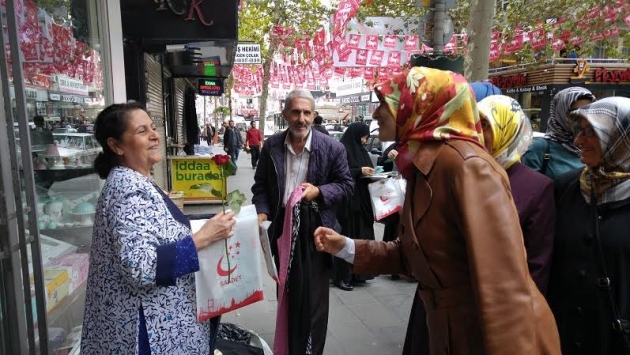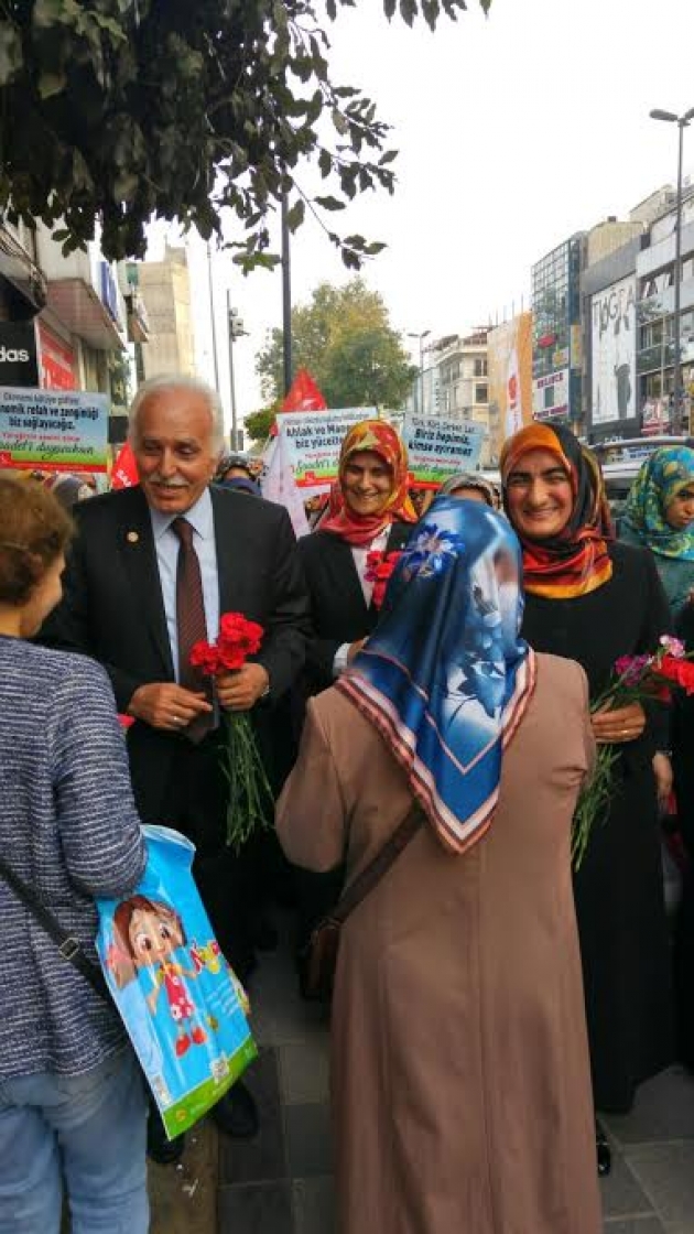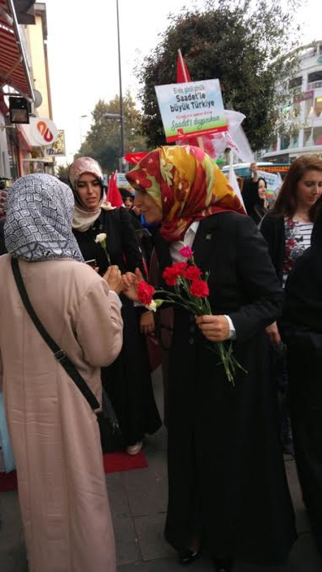 Öncelikle iltifatlarınız için teşekkür ederim. İnsanlığın faydasına olacak her şeyde mutlaka Mili Görüş vardır. Erbakan hocamız, bundan 46 yıl önce önümüze bir hedef koydu. Bu camianın insanlarının şu anda yürüttüğü bütün siyasi çalışmalar bu hedef doğrultusundadır. Burada sadece 3 cümleyle hedefi anlatacağım. Yaşanabilir bir Türkiye. Yeniden büyük Türkiye. Yeni bir dünya. İşte Erbakan hocamızın hedefi buydu. Bu çerçevede öyle bir siyaset yapacaksınız ki 76 milyonun mutluluğunu tesis edeceksiniz. Mutlu insanlarla bu vatan kalkınabilir. Refaha ulaşmış insanlarla kalkınma sağlanabilir. Bizim asli görevimiz 76 milyonun saadetidir. Bu saadet inanç özgürlügünü kapsıyorsa, Saadet Partisi mutlaka inanç özgürlüğünün yanındadır. Bu saadet ulaşımda kadının rahatlığını kapsıyorsa, Saadet Partisi “Pembe otobüs-metrobüs projesi”yle oradadır. Bu saadet, zalim karşısına dikilmeyi gerektiriyorsa Saadet Partisi oradadır. Mesela geçtiğimiz günlerde yüreklerimizi yakan bir fotoğraf vardı. Türkiye Cumhuriyeti vatandaşı değildi ama Türkiye Cumhuriyeti sahillerine vurmuş bir Aylan Kurdi fotoğrafı vardı. Bu çocuğa ilk sahip çıkan biz olduk. Biz öyle bir organizeyle çıktık ki kamuoyunun karşısına diğerleri bizden sonra ses çıkarmaya başladı. “Bu muameleye layık değil insanlar” dedik. Nerede bir sıkıntı varsa Saadet Partili kadınlar oradadır. Bizim önümüzdeki hedef 76 milyon vatan evledının huzuru ve mutluluğudur. Yeter mi? Yetmez. Öyle bir coğrafyada yaşıyoruz ki kan,gözyaşı hiç dinmiyor.Bölgemizde ve 1 buçuk milyarlık İslam Alemi’nin mutluluğunu hedefleriz. Çünkü kardeşiniz acı çekerken siz mutlu olamazsınız. Bu aynen şuna benzer: Evinizde oturup ailenizle yemek yemeye başladığınız sırada komşunuzun evinden gelen çığlığa kayıtsız kalamazsınız. Türkiye sınırları içinde yaşarken, Suriye’nin çığlıklarını duyarsanız bütün huzurunuz kaçar. Aksi takdirde insanlıktan nasibinizi almamışsınız demektir. Maalesef Ortadoğu tarihinin her döneminde herkesin hedefinde olmuş bir coğrafyadır. Yer altı ve yer üstü zengilikleriyle İslam cografyası bütün okların hedefi olmuştur. Yeniden büyük Türkiye, yaşanabilir bir Türkiye demek, İslam coğrafyasında huzur ve istikrar demektir. Tıpkı ecdadımızın döneminde olduğu gibi, izzetli duruşla olur. Amerika’nın kapısında köle olmakla, stratejik müttefik olmakla, düşmanı dost bilmekle İzzetli duruş olmaz. Avrupa Birliği kapılarında, “Bizi aranıza alın. İstediğiniz herşeyi yapacağız” demekle izzetli duruş olmaz. Şahsiyetli dış politikayla olur. Bölgenin abisi olduğunuz zaman, ayağa kaltığınız anda bütün olumsuzluklar biter. Aynı Osmanlı’da olduğu gibi. Dünyanın değişik yerlerinde hergün 10 binlerce bebek hayatını kaybediyor. Kimisi savaşladan, kimisi açlıktan kimisi de ilaçsızlıktan hayatını kaybediyor. Bunun hesabını kim soracak? Biz bunun hesabını soracak Türkiye için çalışıyoruz. Biz onun için “Yaşanabilir bir Türkiye, Yeniden büyük Türkiye, yeni bir dünya ve adil bir dünya” diyoruz. İdealimiz işte budur. Saadet Partisi, Filistin için, Arakanlı Müslümanlar için ve Suriye’deki kardeşlerimiz için çalışıyor çalışmaya devam edecek. Burada bizim de bir katkımız varsa ne mutlu bizlere.
