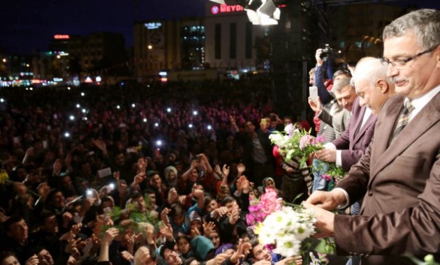 Rabia Meydanı'nda düzenlenen etkinlikte ilk olarak Tasavvuf Sanatçısı Bekir Çiçek, en sevilen eserlerini meydanı tıklım tıklım dolduranlar için okudu.