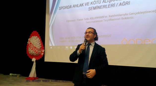 Ağrı imam hatip liseleri için düzenlenen ahlak ve maneviyatı koruma semineri Ağrı kültür merkezinde yapıldı. Eğitimci yazar Sıtkı Aslanhan imam hatip öğrencilere verdiği seminerde gelecekdeki tehlikeler hakkında verdiği yaşamdaki örnekleri anlattı. İnternet, cep telefonu, kötü arkadaşların tehlikelerini dile getirdi. Ağrı imam hatip liseleri mezunlar derneği derneği başkanı Tekin Ergül selamlama konuşmasında imam hatip neslinin gelecekleri olduğunu başarılı olmanın çalışmakda geçtiğini söyledi. Seminer prpgramına Cok sayıda katılımcı katılırken bu özel günde gençlik spor il müdürü Aziz Sinan Alp, Ağrı İbrahim Çeçen üniversitesi genel sekreter yardımcısı Ali Özgüner, daire başkanları Kamuran Karahamza, Demirali Şıktar, milli eğitim şube müdürü Murat Karakul, Memursen ve Egitim birsen şube başkanı Süleyman Gümüşer ve pkul müdürleri Celal Ayyıldız hazır bulundular. Seminer sonunda sorulara doğru cevap veren öğrencilere hediyeler verilirken protokolde yer alanlarada günün anısına pkaketlet vrildi. Öğrencilerin seminer spnunda eğitimci yazar Sıtkı Aslanhan' a olan ilgisi cok fazla oldu. Hatıra fotpğragları ile seminer son buldu.