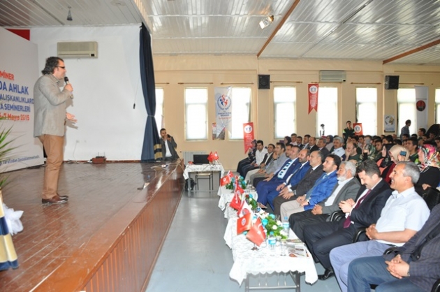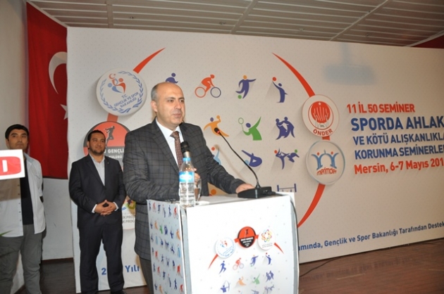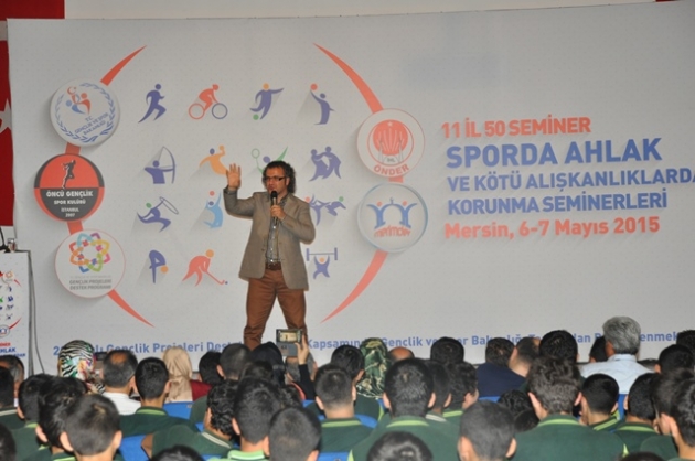 Sporda Ahlak ve maneviyat seminerleri Mersin Dumlupınar anadolu imam hatip lisesinde 2 gün devam eden son oturumu yapıldı. Çok sayıda protokolde katılımcılar yer alırken Mersin üniversitesi rektörü Ahmet Çamsarı, Öncü spor kulübü başkanı Hacı Sürmeneli, ev sahipliği yapan Merimder başkanı Hayri Topçu, eski merimder dernek başkanı ve il genel meclis üyesi İsmail Yerlikaya İl milli eğitim müdürü Adem Koca, il sağlık müdürü Mustafa kemal Başarılı, İl tarım müdürü Kadir Çiftepala, Merimder kadın kolları başkanı Mevlüde Karakaya, Dumlupınar okul müdürü Mücahir Dener ve adını sayamadığımız çok sayıda bürokrat katıldı. Dumlupınar anadolu imam hatip lisesi öğrencilerin katıldığı seminerde salon tıka basa doldu. Seminer açılışını Hafız Bilal Ömeroğlu'nun okuduğu Kuranı Kerim tilaveti ile başladı. Programın ev sahipliğini yapan (Merimder ) Mersin İmam hatip mezunlar mensuplar Muhipleri başkanı Hayri Topcu açılış konuşmasında merimderin kuruluşu ve çalışmaları hakkında bilgi verdi. Başkan Hayri Topcu " Hedefimiz her mahalleye imam hatip okulları açmaktır. Genç Merimder ve kadın kolları başkanlığımıza çalışmalarından dolayı teşekkür ederim. Biz kimsenin emeğine basmadığımız gibi , hiç kimseninde bizim emeğimize basmasına asla müsade etmeyiz. Biz çalışacağız , yürümeyeceğiz. koşacağız. 20 şubattan dolayı 20 yılımızı kapattık."dedi. Mersin il milli eğitim müdürü Adem selamlama konuşmasında bu seminerlerde emeği geçen herkese teşekkür etti. Selamlama konuşması için kürsüye çıkan Rektör Ahmet Çamsarı konuşmasında öğrencileri üniversiteye davet etti. Mersin Üniversitesinin 14. sırada olduğunu müjdesini verdi. Rektör Ahmet Çamsarı Uluslar arası ilişkilere başladıklarını" Azerbaycanda öğrenci almaya başlıyoruz. Afrika ve orta asyada öğrenciler alacağız. Onlarda inşallah vatanlarına faydalı insanlar olurlar"dedi. Öncü spor kulübü başkanı Haci Sürmeneli selamlama konuşmasında "O zor dönemde okullara giden öğrencilerden, onları okullara gönderen velilerden allah razı olsun. Davalarına sahip çıkanların sayesinde şimdi belediye başkanlığına değil Cumhurbaşkanlığına baş örtüsü ile artık girildi. Buraya sizlerin güzel ahlak elçileri olduğunuzu hatırlatmak için geldik. "dedi. Konuşmalar sonunda plaketler taktim edildi. Seminere başlayan Sıtkı Aslanhan gençlerin hedefsiz olduklarını dile getirirken hayatta başarılı olmaları için sırları verdi. Alın teri olmadan hiç bir başarının olmayacağını dile getirdi. Cep telefonlarından , kötü arkadaşlardan , internetin sakıncalarından örnekler vererek başarının önündeki engeleleri tek tek sıraladı.Çoşkuyla dinleyen öğrenciler seminer sonunda sorulan soruları bilenlere hediyeler taktim edildi. Toplu çekilen fotoğraflarla bu özel gün anılara kayıt edilmiş oldu.