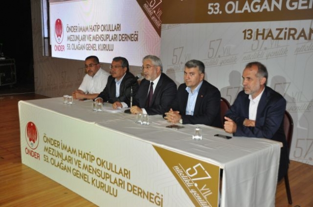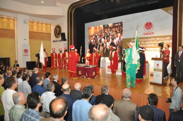 Önder imam hatip mezunlar ve mensupları derneği olağan kongresini coşkulu bir şekilde gerçekleşti. Cağaloğlun'da bulunan Milli Türk talebe birliği kongre salonunda gerçekleşen kongreye çok sayıda katılım yer aldı. Başbakan yardımcısı Numan Kurtulmuş, ak parti genel başkan yardımcısı Mustafa Şentop, Nurettin Nebati, milletvekilleri Feyzullah Kıyıklık,Halil Erdemir, Din ve öğretim genel müdürü Nazif Yılmaz bahçelievler belediye başkan yardımcısı Hikmet Tekiroğlu, Öncü gençlik spor kulübü başkanı Haci Sürmeneli, Eski Has parti genel başkan yardımcısı Erol Erdğan, Önder genel müdürü Sabri Otağ ve il imam hatip mezunları dernek başkanları kongrede hazır bulundular. Selamlama konuşması yapan önder imam hatip mezunları dernek başkanı Hüseyin Korkut konuşmasında İmam hatip camiasında emeği geçen Celal Öktem, Adnan Menderes, eski başbakanlardan merhum Necmettin Erbakan, Cumhurbaşkanı Recep Tayyip Erdoğan'a imam hatip camiasına hizmet ettikleri için teşekkür etti. Kongre divan başkanlığına onursal önder başkanı İbrahim Solmaz seçilirlken Namık Ayhan, Burhanettin Kansızoğlu, Cebrail Yakışır'da üye olarak seçildi. Program öncesi Kuranı Kerim okundu. , Mehter takımı marşlar söyleyerek programa renk kattılar.. Kongre açılışında konuşma yapan onursal başkan İbrahim Solmaz İmam Hatipler milletimizin fabrika ayarlarıdır. Öz benliğimizden dinimizden koparılmaya karşı İstiklal mücadelemizin darbelere karşı dik duruşun sembolü olmuştur. Bu dönemde daha çok çalışmamız gerekiyor. 4+4+4 ile özgürleşmemizi sağlayan Cumhurbaşkanımıza teşekkür ederiz."dedi. Başbakan yardımcısı Numan Kurtulmuş'da konuşmasında Nazım Hikmet ile hatıratlarını dile getirirken mücadelelerden söz etti.Başbakan yardımcısı Numan Kurtulmuş " İmam Hatip liseleri Özgür medeniyet mücadelemizin sembol kuruluşlarından olmuştur. Bu memlekette 150 senedir mücadele veriyoruz. İmam hatip'e millet sahip çıkmıştır.İmam hatipler devlet ve millet kaynaşmasını sağlayarak kurulmuştur. İmam hatiplerin büyüdüğü dönemler devletin büyüdüğü dönemlerdir. Türkiye kervan yoluna girmiştir. Rüzgar nereden eserse essin sayısal olarak güce sahibiz. Ancak yetmez, niteliksel olarakda çok büyük güçlere sahip olmamız gerekir." dedi.