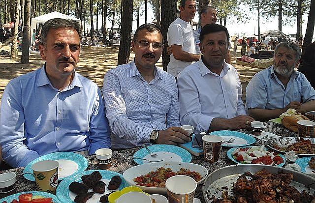 Şölen alanında her sofraya giderek hemşerilerinin bereket sofrasında yer alarak gönülleri dolduran Kaymakam, belediye başkanı ve dernek başkanları verilen ikramları geri çevirmediler.