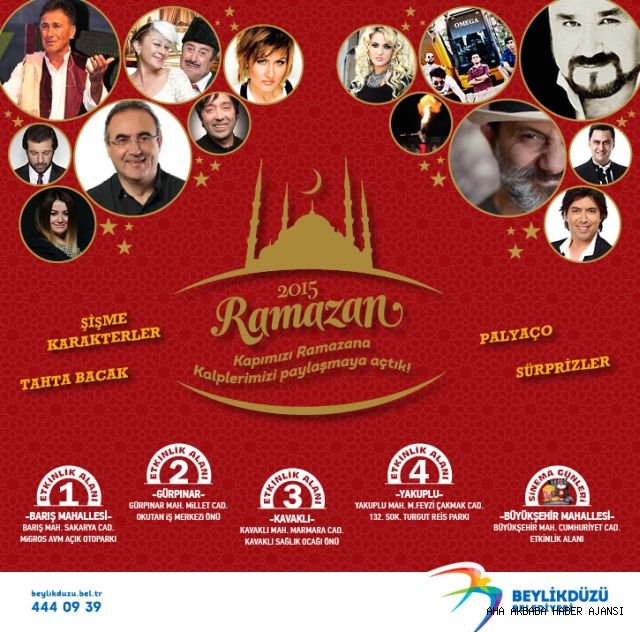 Beylikdüzü halkı, tam bir ay boyunca dolu dolu geçen Ramazan akşamları yaşayacak.Barış, Büyükşehir, Yakuplu, Gürpınar ve Kavaklı Mahallelerinde geleneksel gösteriler, konserler, tiyatro ve çeşitli yarışmalar gerçekleşecek.