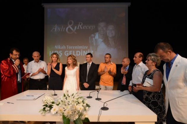 İmamoğlu’nun, “Heyecanlı bir nikah oldu. Recep kardeşim 7 sene boyunca nikahı benim kılmamı beklemiş. Yoksa bu teklif kızımıza daha önceden de olabilirmiş” şeklindeki konuşması salonda gülümsemelere neden oldu.