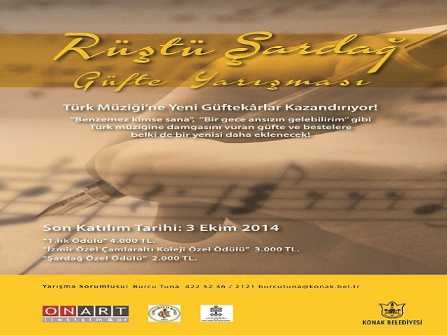 Siyasetçi, yazar, besteci ve şair Rüştü Şardağ'ın Türk Müziği ve şiirine yazar olarak katkılarını yeniden gündeme getirerek gençleri güfte yazımına özendirmek amacıyla düzenlenen ve duyurusu Ağustos ayında Konak Belediye Başkanı Sema Pekdaş’ın da katılımıyla yapılan Rüştü Şardağ Güfte Yarışması'na başvuranların 64’ünü erkek bestekarlar oluştururken, yarışmaya 36 kadın bestekar da eserleriyle katıldı. Yarışmaya rekor başvuru İzmir’den gerçekleşti. 100 eserin 67’sini İzmirli bestekar oluştururken, Ankara ve Balıkesir’den de 8 eser yer aldı. İzmir Devlet Korosu Şefi Hayati Çiftçi, merhum Rüştü Şardağ'ın kızı Sabah Şardağ, Yazar Şengül Kıran ve Konak Belediyesi Kültür ve Sosyal İşler Müdürü Halim Yazıcı'dan oluşan seçici kurulun değerlendirmesiyle ön elemeyi geçen 45 eser final öncesi son kurula katılmaya hak kazandı.