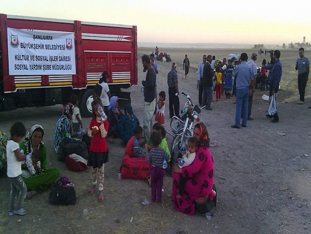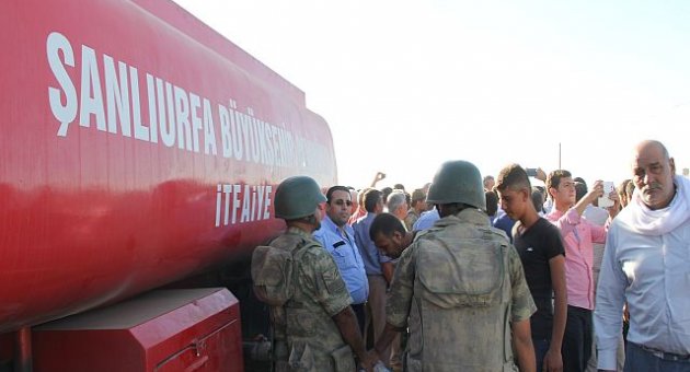 Suriyeli vatandaşların hayati ihtiyaçlarını karşılayan Şanlıurfa Büyükşehir Belediyesi; sınır hattında ve ilçeye gelen Kobani’li vatandaşlara Su tanklarının yanı sıra 5 bin Hazır Su yardımında bulundu.
