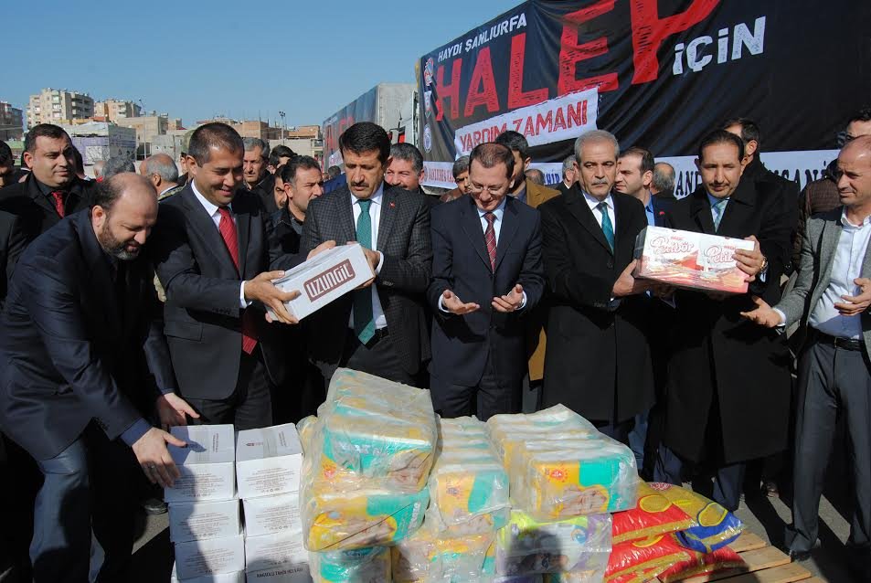 Şanlıurfa Vali Yardımcısı Cengizhan Yılmaz ise: "Halep her ne kadar farklı bir ülkeye ait, farklı bir şehir gibi görünse de 100 yıl önce Çanakkale'de Urfalı Yusuf, Trabzonlu Ömer'le Halepli Mehmet şehit olmuştur. TIR'ların üzerinde yardım yazılsa da Halep'e yapılanlara yardım değil asli sorumluluğumuzdur diye düşünüyorum" dedi. Haliliye Belediye Başkanı Halil Demirkol, sosyal sorumluluk gereği Halep'e yardımda bulunduklarını belirtti. Eyyübiye Belediye Başkanı Mehmet Ekinci ise Eyyübiye Belediyesi olarak Halep'e yardımda bulunduklarını belirtti. Şanlıurfa İl Müftüsü İhsan Açık ise yaptığı duanın ardından yardım TIR'ları Halep'e ulaştırılmak üzere uğurlandı.