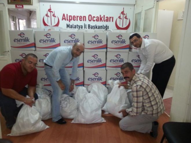 Malatya Alperen Ocakları İş dünyası masası Başkanı Selim ÜNAL öncülüğünde Sosyal faaliyetler masası başkanı Haci Bayram NALÇACI ve Basın Yayın Masası Başkanı İnş.Müh.Akın BİLİK tarafından Organize edilen Yardıma ihtiyaç sahibi belirlenen ailelere Ramazan Ayı boyunca gıda kolisi yardımı yapılıyor ve yapmaya devam ediliyor.