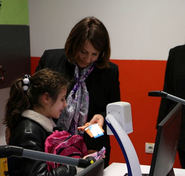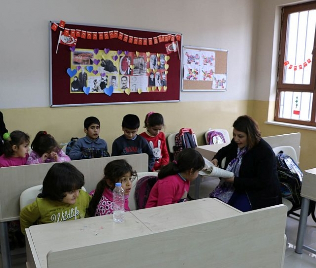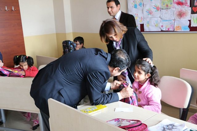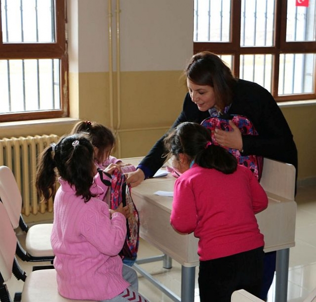 Sınıfları ziyaret ederek öğrencilerle yakından ilgilenen Sema Çiftçi, burada öğrencilerle sohbet edip çeşitli hediyeler verdi.