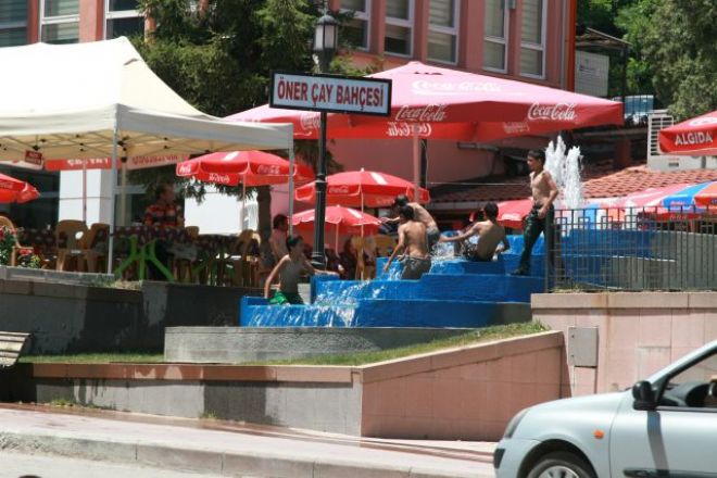 Çocukların çay bahçelerinde havuzlara girdiğini gören vatandaşlar onlara da hak veriyorlar. Denizi olmayan bir ilçede başka ne yapılırdı!