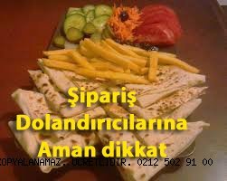 İnönü Caddesi üzerinde bulunan bir büfeye gözleme siparişi veren dolandırıcılar işletmeciden ayrıca 200 lira para üstü istediler. Büfe işletmecisi siparişleri getirirken dolandırıcılar soluğu kaçmakta buldular. Gazetemizin olduğu binayı göstererek sipariş veren dolandırıcı çetesinin tekniği şu şekilde; Önce sipariş veriyor Para üstü talep ediyor bina önündeyken siparişi getiren kişiden Para üstünü teslim alarak 200 lirayı daireden alacağını söyleyerek oyalamak suretiyle gözden kayboluyorlar. Sipariş üzerine kurulan bu sistemi karşı Uyanık esnafın duyarlılığı bizleri aramasıyla dolandırıcılar foyası meydana çıkıyor. Yetkililer bu tür dolandırıcılara fırsat vermemek adına kuşkullandıkları anda 155 polis hattını arayarak veya 1550 Mesaj servisi ile ihbarda bulunmalarını istediler.
