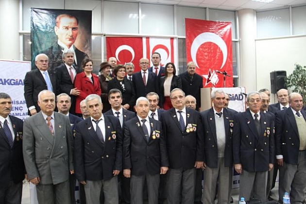Talat, konferans sonunda Akhisar'da yaşayan Kıbrıs Gazileri ile hatıra fotoğrafı çektirdi.