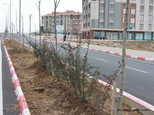 TOKİ Yolu’nda ağaç ve bitki dikimleri sonrası otomatik sulama sisteminin de orta refüje uygulanacağı belirtildi.