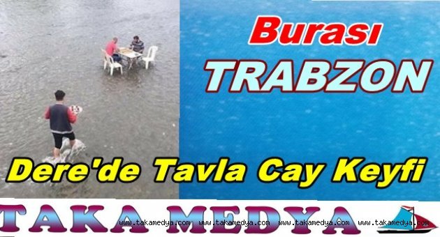Tavlasını burada oynayan esnaf çay isteyince Çay ocağı sahibi de paçaları sıvayarak dereye girmek zorunda kaldı ve işte ortaya bu ilginç fotoğraf çıktı