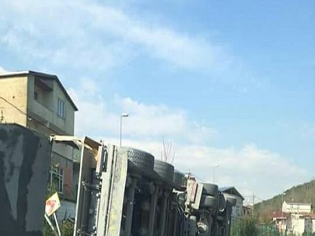 Bu sabah saatlerinde Sarıyer'den Arnavutköy istikametine giden hafriyat yüklü tır virajı hızlı girince direksiyon hakimiyetini kaybederek yolda yan yattı faciadan dönüldü.