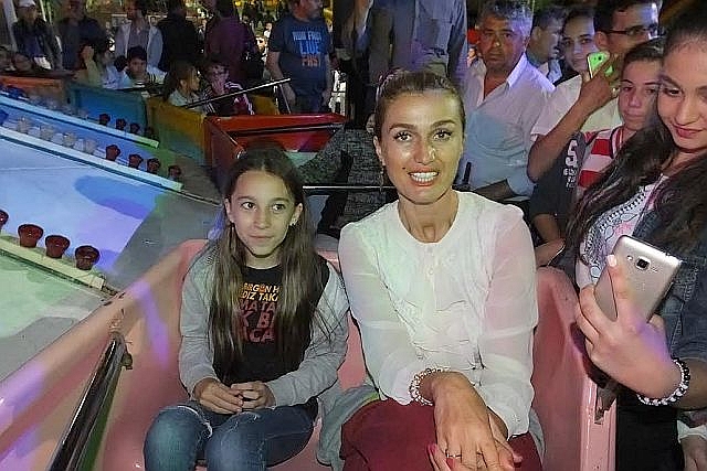 Uzun yıllar sonra ilk kez balerine binen Tuğba Özay, Sanatçı Deniz Seki içinde açıklamalarda bulundu. Sahnede çocuklarla birlikte şarkılar söyleyerek dans eden Özay, kermes alanındaki lunaparkta balerine de bindi.