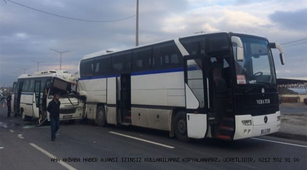 Manisa'nın Turgutlu ilçesinde iki işçi servisinin çarpışmasıyla meydana gelen trafik kazasında 14 kişi yaralandı.