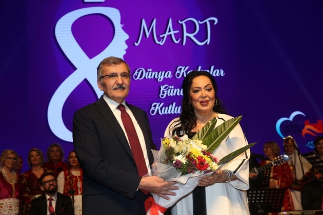 Kadına Saygı programı açılış ve konuşmalarının ardından yöresel kıyafetleriyle sahne alan kadınlar, ünlü oyuncu Türkan Şoray’a mini bir konser verdi. “Selvi Boylum Al Yazmalım” sürpriziyle duygulanan Şoray, kendisine yapılan bu jeste karşılık ayağa kalkıp sahneye çıktı. “Biz kadınlar sevgi doluyuz, imkan verildiği takdirde gücümüz ortaya çıkıyor. Dünyayı çok daha güzelleştirilebiliriz.” diyen Şoray, çağdaşlaşmanın gücü kadının toplumdaki gücü ile gerçekleşir. Buna toplum olarak inanır, eğitim olarak da önem verirsek kadına yönelik şiddet problemlerinin kalkacağına inanıyorum. O günlerin umudu ile Kadınlar Günümüz tekrar kutlu olsun. Hepinizi o güzel yüzünüzden, yüreğinizden öpüyorum.” dedi.