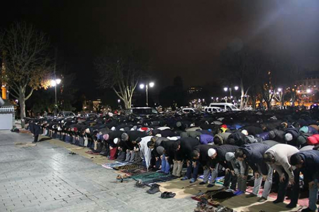Milli gençlik vakfı ve anadolu gençlik derneğini ortaklaşa düzenlediği müslüman mazlumların yanında olmak adına ayasofya'da sabah namazında kalpler bir oldu. Açılan ellerle yapılan dualar semalara yükseldi Protokolin yaptığı konuşmalarda yaşanan zulme dur denildi.