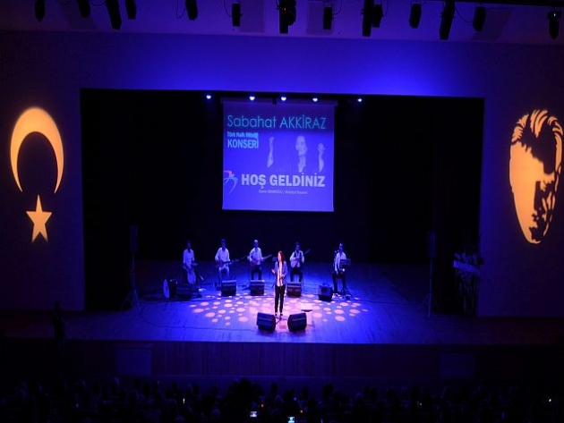Müzik kariyeri boyunca başarılı işlere imza atan ve çok sayıda albüm çıkaran Sabahat Akkiraz ilk olarak herkesin bildiği “Şaha Gidelim” türküsünü seslendirdi. “Aman Tabip ve Hasretinle Beni” türkülerinden sonra “Dünyada en güzel şey türkü söylemek ve türkü dinlemek. Ne yazık ki savaşlar, göçler ve ölümler yaşanıyor. Biz kalbimizi türkülerle tamir edelim. Mustafa Kemal’in dediği gibi yurtta barış, dünyada barış” diyerek konserine devam etti. Ney solosu eşliğinde söylediği uzun hava “Açma Yaram” ve “Karlı Dağlar Karın Almış” türkülerinde gözyaşlarına hakim olamayan Akkiraz, “Profesyonelliğe sığmıyor ama çocuklara dayanamıyorum” dedi.