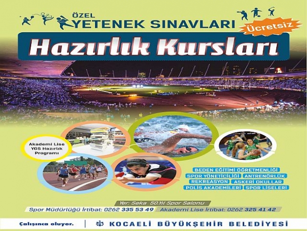 Büyükşehir bu amaç için Lise Akademi ile daha önce başlattığı Ücretsiz Spor Özel Yetenek Kurslarını bir araya getirdi. Bilindiği gibi Spor Akademileri yetenek sınavlarıyla öğrenci kabul ediyor. Ancak üniversitede Spor Akademisi’ni tercih edecek olan öğrencinin YGS sınavında da yeterli puanı alması gerekiyor. Yetenek sınavlarına hazırlanacak olan öğrenciler sınavlara özel kurslarda ücret ödeyerek hazırlanıyor.