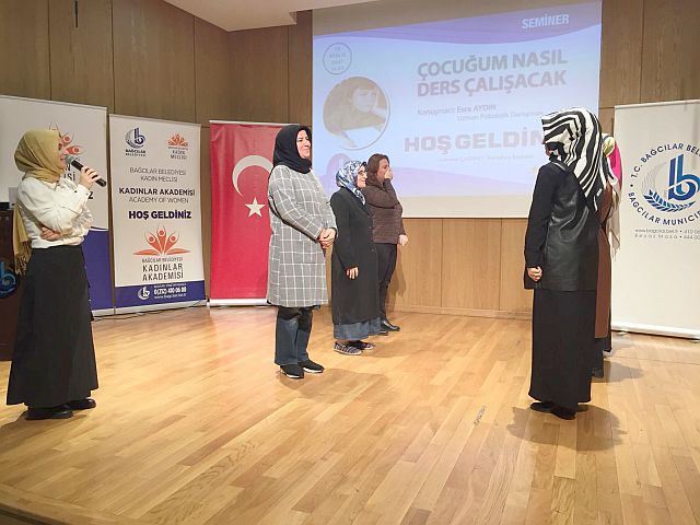 Bağcılar Belediyesi’nin düzenlediği programda çocukların ders çalışmamalarının basit bir sorun olmadığına dikkat çeken Psikolog Esra Aydın, aileleri yaptıkları yanlışlar konusunda uyardı. Aydın, “Okuldan gelince hemen sorular sormayın çocuk bir soluk alsın. Ev işlerini biraz bırakıp çocuklarla ilgilenin. Ödevleri onun yerine yapmayın. Düzenli aralıklarla ödüllendirmelerde bulunun” dedi.