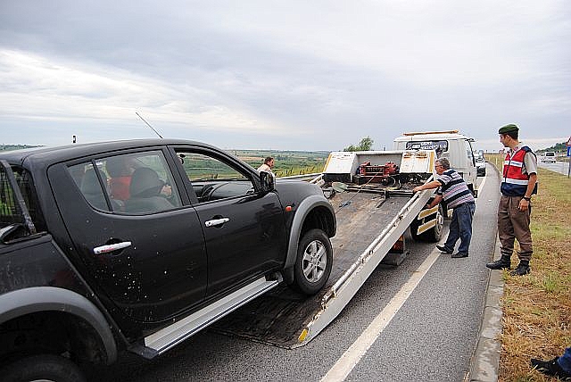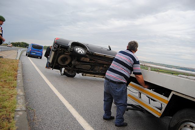 Edinilen bilgiye göre, Edirne - Uzunköprü kara yolundaki Parpudar bayırı mevkisinde İ.T nin kullandığı otomobil, Havanın yağışlı olması ve yerin kaygan olması nedeni ile sürücüsünün direksiyon hakimiyetini kaybetmesi sonucu Refüje ve bariyerlere çarparak yolda yan yattı