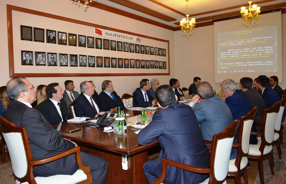 Valilik toplantı salonunda düzenlenen, Vali Yardımcısı Ali Deniz Sürmen, Büyükşehir Belediyesi Genel Sekreteri Ercan Turan, İlçe Belediyesi Başkanları ve Başkan Yardımcıları, Gıda Tarım ve Hayvancılık İl Müdürü Tahir Macit ile görevlilerin katıldığı toplantıda Malatya meralarındaki sorunlar dile getirilerek, çözüme kavuşturulması için gerekli adımların atılması yönünde görüşler dile getirildi.İlimiz Meraları ile ilgili Mera Komisyonunun yapmış olduğu çalışmalar, meraların son durumları ile ilgili olarak gündemdeki konular ve alınması gereken kararlar komisyonda görüşülerek görsel bilgilendirme sunumu yapıldı.