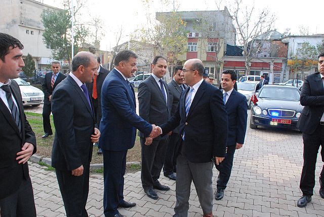 Vali Mahmut Demirtaş’ı Gerger Hükümet Konağı önünde Kaymakam Bülent Hamitoğlu ile ilçenin yöneticileri karşıladı.