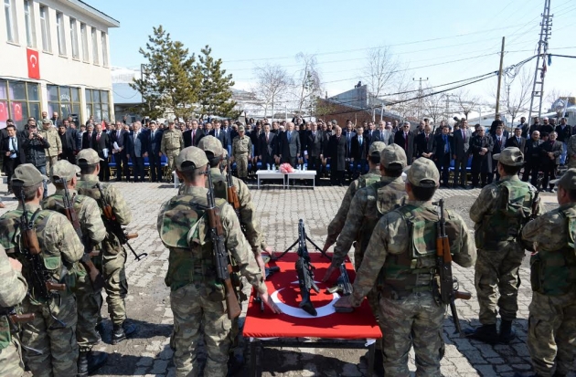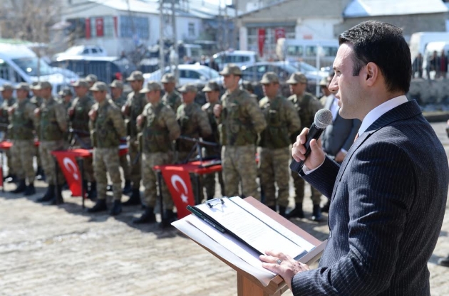 Beraberinde Kaymakam Sadrettin Doğan, Çat Belediye Başkanı Arif Hikmet Kılıç,İl Emniyet Müdürü Mehmet Aslan, İl Jandarma Alay Komutanı Albay Mustafa Çelik ve daire müdürleri ile birlikte Yavi Mahallesine giden Vali Seyfettin Azizoğlu göreve yeni başlayan 20 korucunun yemin törenine katıldı. Yemin eden korucular Yavi, Bardakçı ve Değirmenli kırsalında görev yapacak. Törende bir konuşma yapan Vali Seyfettin Azizoğlu şu ifadeleri kullandı: