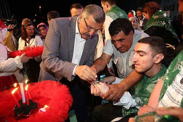 Engelli bireylerin, vatan savunmasında en ön saflarda olma arzusunu taşıdıklarını belirten Zeytinburnu Belediye Başkanı Murat Aydın, “Bu akşam engelli kardeşlerimizin kına gecelerini yapıyoruz. Hayata tutunmak için en fazla mücadele veren ve dezavantajlı olan bu gençlerimizin sağlık sebeplerinden dolayı tam anlamıyla askerlik yapma imkanları ne yazık ki bulunmuyor. Ama her vatan evladı gibi onlar da günübirlik de olsa askerliğin tadına varmak istiyorlar. Asker ocağına gidip bir gün de olsa o anı yaşamanın hevesindeler. Unutmayalım ki bizler vatanını seven bu gençler sayesinde ayaktayız. Eğer huzur içerisinde bu ülkede yaşayabiliyorsak bunda askerlerimizin çok ama çok büyük katkısı var. Bu gençlerimiz de hayata tutunma mücadelesinin yanı sıra vatan savunmasına da katkı vermek istediklerini dile getirdiler. Sağ olsun Genelkurmay Başkanlığımız da uygun gördü ve bu sayede engelli gençlerimizi bir günlüğüne de olsa asker olarak görebilmenin gururunu ve onurunu yaşadık.” ifadelerini kullandı.