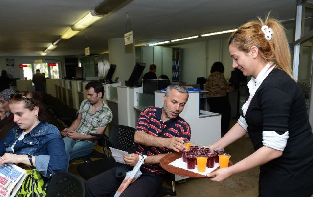 AHA İSTANBUL- Beyoğlu Belediyesi 2013 yılı vergi ödemelerini yapan vatandaşların rahat etmesi için hizmette sınır tanımıyor. Belediye, ödemelerini yapmak için Beyoğlu Vergi Dairesine gelen mükelleflere, meşrubat ve kahve servisi yapıyor.