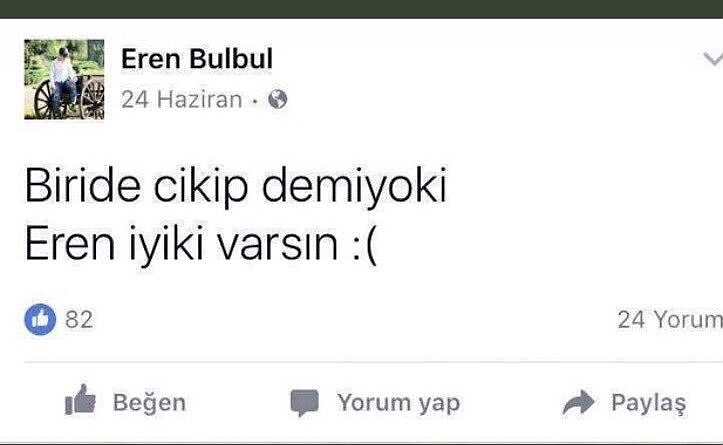 Henüz 15 yaşında şehit olan Eren Bülbül'ün sosyal medya üzerinden yaptığı paylaşım ise görenleri duygulandırdı. Sosyal medyasında yazdığı, ''Biri de demiyor ki Eren iyi ki varsın'' sosyal medyada en çok konuşulan konu oldu.