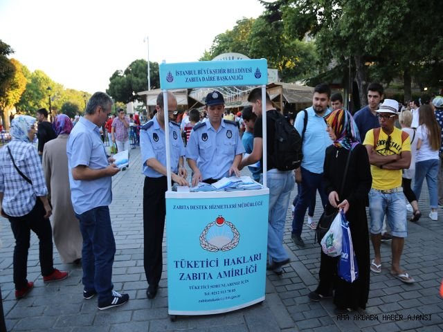 Ramazan ayı dolayısıyla Ramazan etkinlik alanlarında stantlar açan İBB Tüketici Hakları Zabıta Amirliği, vatandaşları tüketici hakları konusunda bilgilendiriyor. Tüketici Hakları konusunda farkındalık oluşturmak amacıyla iftar öncesi ve sonrasında Yenikapı, Maltepe, Sultanahmet ve Bağcılar Meydanı'nda stantlar açan İBB Zabıta ekipleri, vatandaşlara 6502 Sayılı Tüketicinin Korunması Hakkında Kanun kapsamında bilgi vererek, Bilinçli Tüketici Rehberleriyle birlikte çeşitli promosyon ürünleri dağıtıyor.