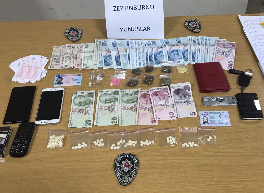 Akşam saatlerinde Zeytinburnu emniyetine bağlı emniyet güçleri Çırpıcı mahallesinde şüphelendikleri bir araçta yaptıkları uygulamada uyuşturucu zehir tacirleri satışa hazır uyuşturucu ile beraber kıskıvrak yakalandı. Araç içerisinde bulunan iki şahıs üzerinde yapılan incelemede Satışa hazır vaziyette paketlenmiş uyuşturucu maddeleri ile uyuşturucu parası ele geçirildi.,Çırpıcı mahallesi 1.Taşocağı Sokak önünde park halinde bulunan araç içerisindeki şoför koltuğunda oturan S. Y isimli şahıs araçtan indirilerek üst aramasında pantolonunun ön bel kısmına gizlenmiş vaziyette 11 adet şeffaf poşet içerisinde iç içe geçirilmiş vaziyette 27 adet hap, kokain ele geçirilirken şahsın uyuşturucu madde şatışından elde ettiği tahmin edilen toplamda 2775 TL para ele geçirilmiş aynı araç içerisinde ön yolcu koltuğundan A. V isimli şahıstan ise 7 adet poşet icerisinde toplamda 49 adet beyaz renkli uyuşturucu hap ele geçirilmiş ve şahsın üst aramasında toplamda 51 adet uyuşturucu hap ele geçirildi. Yakalanan şahıslar gözaltına alındı. Uyuşturucuyla mücadele de kararlılığını sürdüren Zeytinburnu Emniyet Müdürlüğü'nün başarısı her geçen gün artarak devam ederken uyuşturucu tacirleri adalete teslim edildi.
