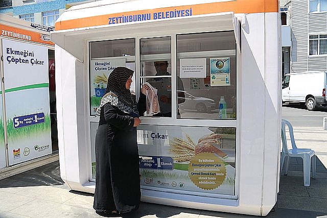 Zeytinburnu Belediyesi, İstanbul Halk Ekmek (İHE) ve Çevre Koruma Ambalaj Atıkları Değerlendirme Vakfı (ÇEVKO) işbirliğiyle devam eden proje kapsamında Zeytinburnu Belediyesi Temizlik İşleri Müdürlüğü’nün 10 personeli her gün kapı kapı dolaşarak binlerce vatandaşa projeyi tanıtıyor. “Ekmeğini Çöpten Çıkar” projesiyle vatandaşlar biriktirdikleri 5 kilo atık karşılığında Halk Ekmek’ten 1 ekmeği kendilerine daha önceden verilen manyetik ‘Çevreci Ekmek Kart’lara yüklenen puanlarla ücretsiz alabiliyor. Hem çevre kirliliğini önleyen hem de ekonomiye katkı sağlayan projede vatandaşlar topladığı atıkları Seyitnizam Mahalle Muhtarlığı ve Mevlana Parkı’na Atık Getirme Merkezleri’ne teslim ediyor.